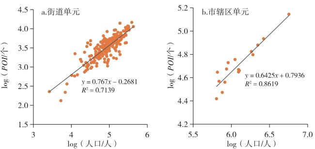 表2 行政划分下不同类别POI空间分布标度律Tab.2 Scaling law for the spatial distribution of different categories of POI under administrative partitioning |