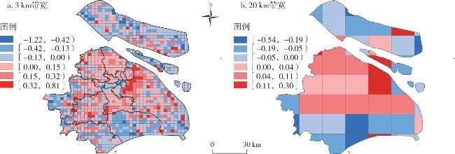 城市的标度律指示城市要素与人口规模之间的缩放关系。文章借助上海POI数据探究不同尺度下城市功能区空间分布与人口规模之间的标度关系,印证城市内部同样存在标度律,并且受到可塑性面积单元问题(MAUP)的制约。 结果表明:①栅格单元下的上海城市功能区空间分布标度律相较行政区划单元更为显著,并且伴随空间尺度的增大而趋于优化。②行政区划下的上海城市功能区空间分布标度律为次线性模式,而栅格单元下则为线性模式。不同城市功能区之间的标度律也存在差异,其中餐饮、购物、居住区为超线性模式,工作、教育区为线性模式,交通区为次线性模式。③上海城市功能区的效能整体较高,包括主城区在内的大部分区域优于预期,同时不同城市功能区的效能存在差异。