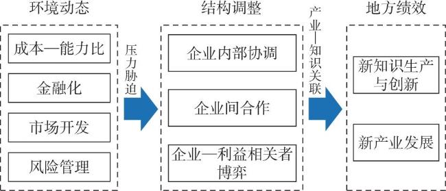 演化经济地理学关注微观行动者对区域新产业发展的影响,但多依据产品间的知识关联性强弱,洞察区域的路径依赖或路径生成机制。文章以广东顺德机器人中小企业特色产业集群为例,利用实地调查获得的数据与相关资料,借鉴全球生产网络的研究成果建立分析框架,探讨了外部环境变化如何影响企业内部组织与外部网络关系,并进而导致新旧产业链接和地方产业演变。 结果表明:市场竞争加剧带来的降本增能双重压力、金融化、市场开发及风险管理等挑战,促使地方企业通过内部协调、企业间合作及产学研政合作等战略调整,依托其在原产业的资源与能力优势,建构新旧产业的知识、技术与生产关联。研究结果还显示,地方行动者的差异化战略,对新旧产业的经济技术关联产生不同的意义和影响,这也为区域新产业生成路径的多种可能性提供了事实依据。