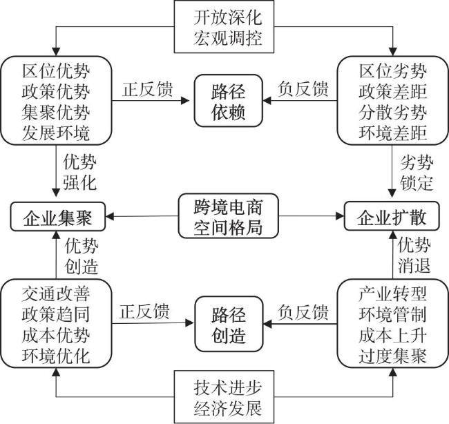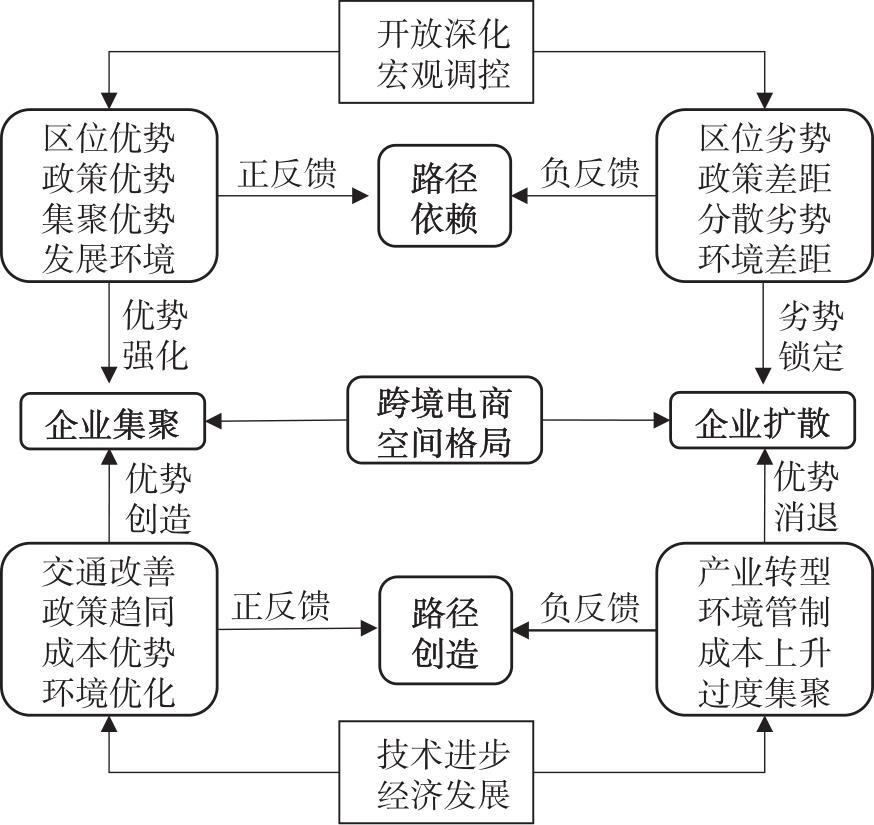 Taking Guangdong Province as the research object, this study analyzes the spatiotemporal variation pattern of its newly added cross-border e-commerce enterprises. Then, an econometric model based on path dependence theory is constructed to illustrate the driving factors of cross-border e-commerce enterprise location selection and spatiotemporal pattern evolution, using methods such as nearest neighbor index, kernel density, standard deviation ellipse, and Theil index. The research results indicate:1) In terms of temporal development, the number of cross-border e-commerce enterprises in Guangdong Province has steadily increased, and new enterprises have shown periodic fluctuations due to the influence of economic environment and policy evolution. 2)The newly added cross-border e-commerce enterprises in Guangdong Province are characterized by both agglomeration and dispersion, with agglomeration as the main trend. The agglomeration direction tends to be horizontal, and the agglomeration centers are located in Shenzhen and Dongguan. The distribution differences between the four major regional sectors are greater than the differences within the sectors. 3)The new cross-border e-commerce enterprises in Guangdong Province have transformed from the gathering of double central axes in Guangzhou and Shenzhen to the gathering of multi central planes on the west bank of the Pearl River Estuary, and further spread to the eastern, western and northern regions of Guangdong by leaps and bounds. 4)The location selection of cross-border e-commerce enterprises presents spatial differences in the Pearl River Delta and non Pearl River Delta regions, with a focus on path dependence and path creation, respectively. The path dependence formed by location conditions and economic development level still dominates among the influencing factors, while policy factors show a path creation effect. The path creation effect of external shocks such as technological progress and openness are not significant.