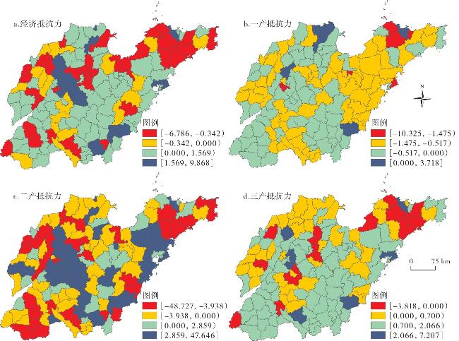 县域经济单元如何积极应对不同属性冲击以维持经济稳定发展成为在高度不确定环境下推动区域经济高质量转型发展的关键。文章以山东省县域经济单元为研究对象,构建抵抗力指数反映金融危机和新冠疫情两类不同属性冲击下的县域经济韧性水平,借助多尺度地理加权回归模型,探究了不同属性冲击下的县域经济韧性影响机制差异及影响要素的空间异质性。 结果表明:①不同属性冲击下山东省县域经济抵抗力表现出异质性特征。山东省县域经济整体和三次产业抵抗金融危机能力均低于全国平均水平,而县域经济整体和第三产业抵抗新冠疫情能力高于全国平均水平。②能动性要素在不同属性冲击下均对区域经济韧性具有显著促进作用,但是作用尺度差异较大。地方财政支持在金融危机冲击下具有空间异质性特征,而在新冠疫情冲击下具有全局性作用特征。疫情治理具有较为显著的空间异质性特征。③结构性要素在不同属性冲击下对区域经济韧性的作用方向发生变化。产业结构高级化在金融危机冲击下以正向空间异质性作用为主,但在新冠疫情冲击下具有负向异质性作用。④区位条件在不同属性冲击下的作用尺度差异明显。文章建议在分析区域经济韧性特征与影响机制时应重视不同冲击的属性与空间异质性特征。