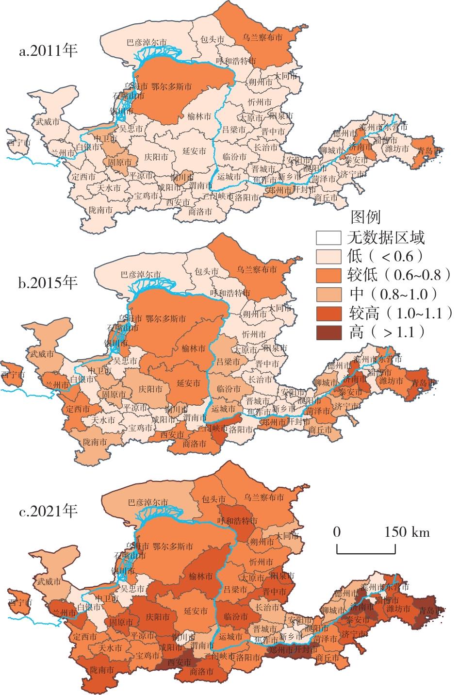 在明晰城市绿色发展效率内涵与厘清数字经济驱动城市绿色发展效率的学理基础上,文章借助Super-SBM模型测度2011—2021年黄河流域城市尺度的绿色发展效率,识别其时空演进特征,并借助面板Tobit模型与门槛回归模型分析了数字经济对黄河流域城市绿色发展效率的线性与非线性效应。 结果表明:①黄河流域城市绿色发展效率具有波动性与较大提升潜力,上中下游三大区域次序格局演变具有动态性与梯度性,60个城市呈现典型的金字塔型层级格局;②空间格局演化具有阶段性特征,由多中心的随机分布转向多核心+多中心的集聚状态分布,出现高高集聚的连绵区,城市绿色发展效率提升受毗邻城市空间溢出效应的影响;③数字经济对该流域城市绿色发展效率驱动效应显著,驱动效应具有时间、空间与城市类型的异质性,经济结构偏重与调整滞后性以及快速提升的城镇化水平进一步加剧了该流域上、中游环境的约束效应;④政府调控与环境规制具有显著的单门槛效应,两者的最优强度应在保持市场灵活性和促进绿色发展的平衡点上,才能与数字经济发挥协同作用。为此,文章从强化数字经济建设、充分释放数字经济绿色效能、优化绿色效率空间格局等方面提出了推进黄河流域生态保护和高质量发展的对策建议。