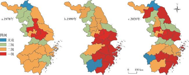 | 年份 | 行政区 | 极强区 | 较强区 | 一般区 | 较弱区 | 极弱区 |