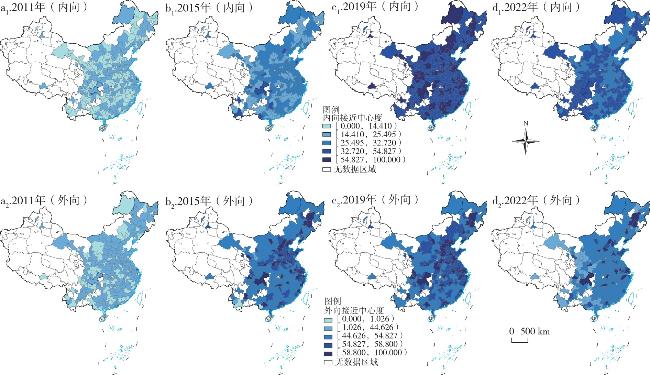 表2 中国城市虚拟旅游流网络的核心—边缘密度矩阵Tab.2 Core-periphery density matrix of the virtual tourism flow network of Chinese cities |