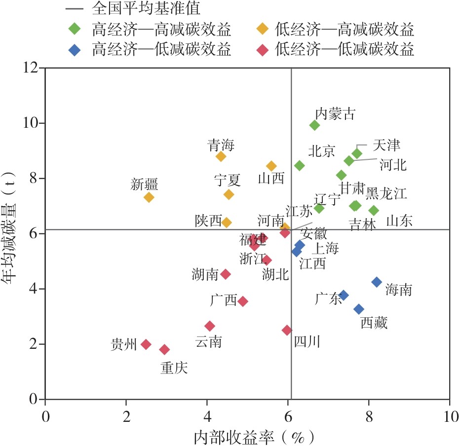 文章聚焦分布式可再生电力生产—储能—终端用能融合系统——“零碳单元体”,通过理论建模与成本效益分析,全面评估了其经济与减碳效益。研究发现:①当零碳单元体的平准化度电成本低于购电价格时,用能主体的效用水平随之提升。②以中国典型家庭为例,“10 kW光伏—10 kW·h储能”的零碳单元体25年期净现值平均约37802元,内部收益率6.08%,平准化度电成本0.28元/kW·h,年均减排6.13t CO2。③区域分析表明,受光照资源、电价水平、电力碳排放因子等影响,零碳单元体在山东、黑龙江等华北与东北地区推广的经济与减碳效益较高,而贵州、重庆等西南地区则相对较低。据此,应充分发挥零碳单元体的经济与环境双重价值,因地制宜推动其在优势地区先行先试并逐步推广,加速释放多元主体的转型潜力,以系统融合方案赋能零碳转型。