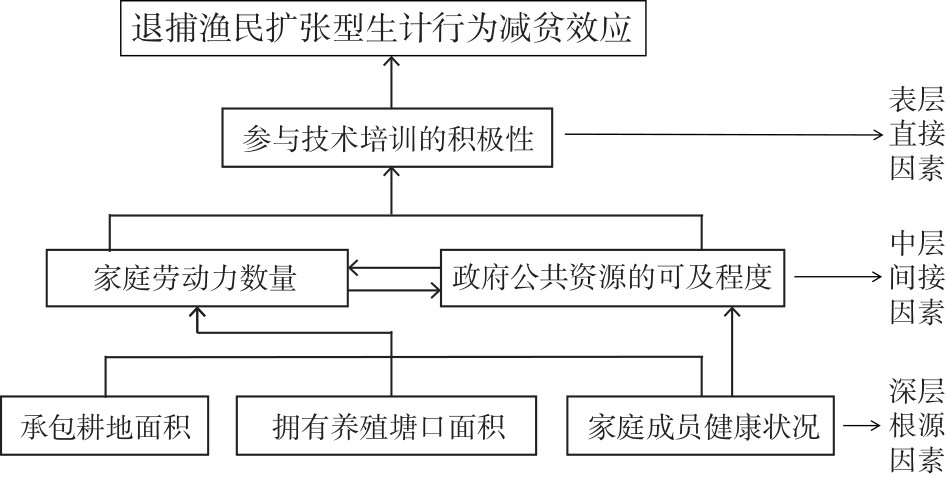 图2 扩张型生计行为减贫效应显性影响因素层次关系Fig.2 Hierarchical relationship diagram of explicit influencing factors on poverty alleviation effect through stepping-up behavior |