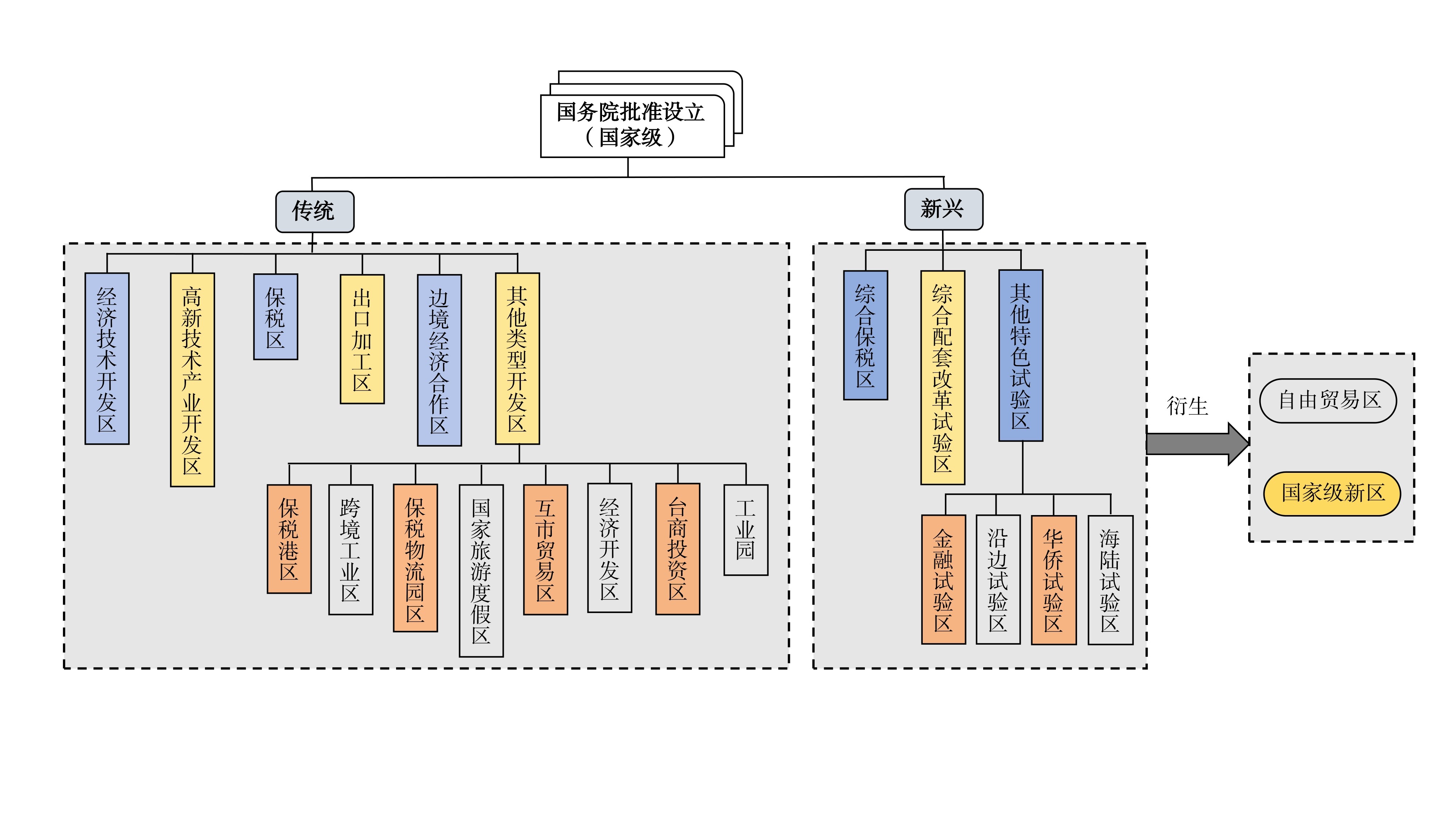 | 管理机构 | 行政管理机构完整,一般设有党委、政府、人大和政协 | 多数为管理委员会,但也存在“政府型”(如浦东新区、天津滨海新区)和“区政合一型”(如广州南沙新区)等模式,其中管委会不设立政府、人大和政协,设立党工委 |