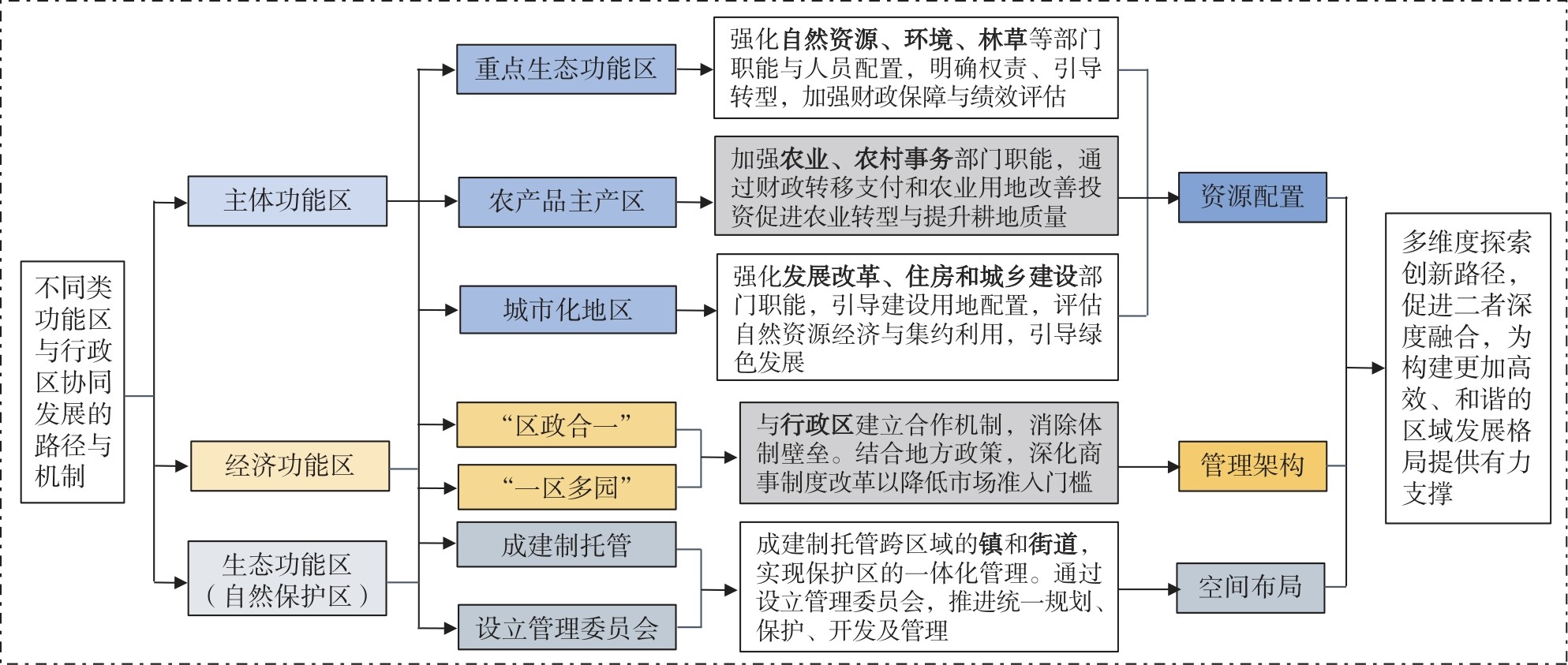 | 协同发展 | 行政区和功能区之间的非耦合在运行中造成了一定的障碍,存在较强的关联性和协同发展的需求,立足于高质量发展进行合理设置和引导转化,二者可以相互促进,融合发展 | |