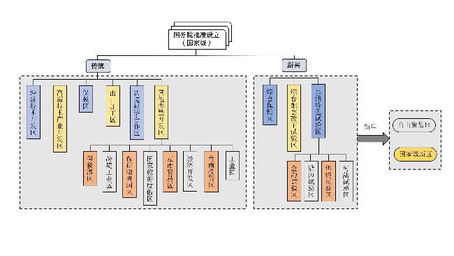 注:资料来源于《行政区划管理条例》《国家级经济技术开发区扩建审批原则和审批程序》、各省开发区条例等。 |
