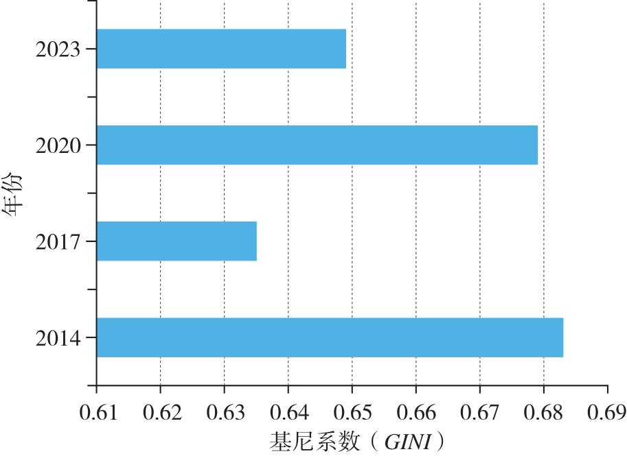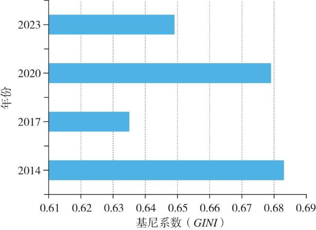 | 年份 | GINI 系数 | 城市经济支撑(%) | 物流业产业规模(%) | 基础设施规模(%) | 综合交通能力(%) | 运行发展能力(%) |
