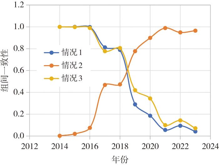| 情况2 | 高消费需求与低全要素生产率(E1/Y) | 组间一致性 | 0.002 | 0.020 | 0.075 | 0.468 | 0.473 | 0.777 | 0.899 | 0.989 | 0.949 | 0.965 |