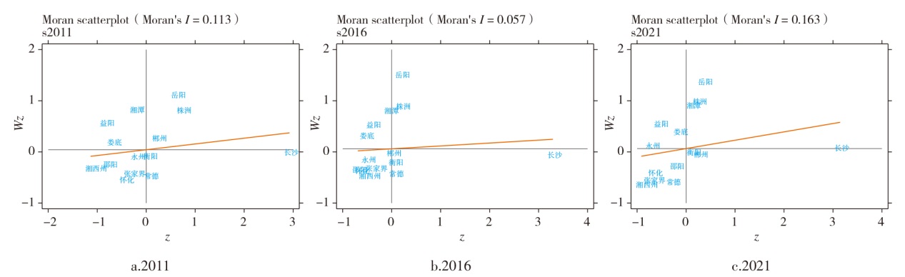 数字湖南建设局域莫兰指数散点图