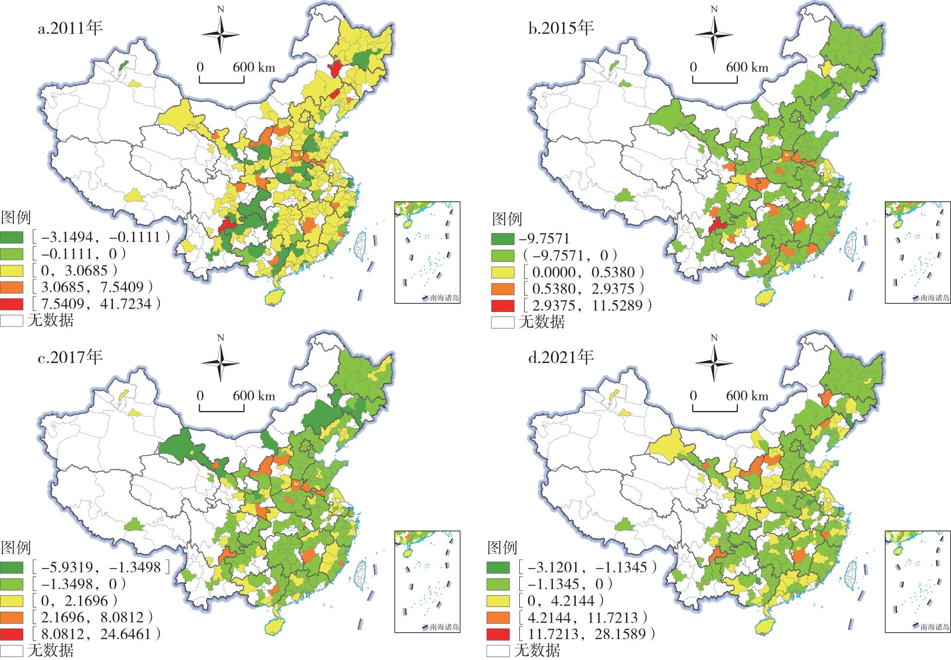 典型年份中国城市经济韧性的空间分布