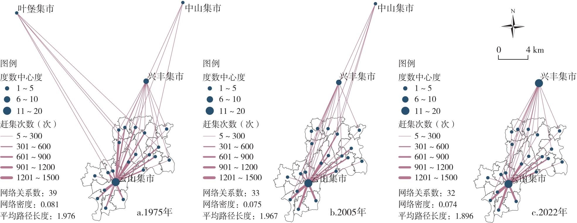 Rural social space is a space constructed by the social relations and behaviors of rural residents, and it is closely related to the rural market, which is a place for commodity exchange and trading activities in rural society. Based on the social network analysis method (SNA), this paper takes Yunshan Town, Qin'an County, Gansu Province, which is located in Longzhong loess hilly region, as the empirical research area, analyzes the evolution process and characteristics of rural social space by constructing a social network model, and explores the interactive relationship and mechanism between the evolution of rural social space and the development of rural market. It's found that:. 1) In the traditional society stage, the urbanization stage and the informationization stage, the rural social space of Yunshan Town has changed significantly, showing an ever-expanding tendency. 2) With the continuous expansion of the rural social space, the interaction between the structure of the rural social network and the nodes of the network in Yunshan Town have become increasingly complex, the rural social network has significant small-world characteristics at different stages of development, the relationship between the network nodes is relatively s