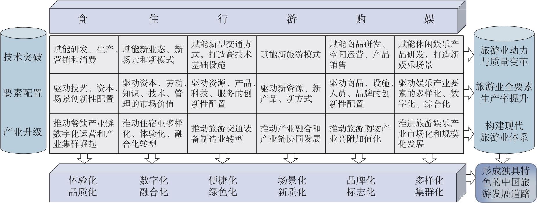 The high-quality development of the tourism industry is an essential aspect of overall high-quality development. The development of new quality productive forces is an intrinsic requirement and a key focus for promoting high-quality tourism development. Exploring how new quality productive forces empower the high-quality development of tourism is a significant practical necessity and an important scientific proposition in the context of China's modernization. Therefore, this study systematically reviews relevant research progress and constructs a conceptual matrix model for empowering high-quality tourism development based on the theory of new quality productive forces and systems thinking paradigms. It also proposes important topics that future research should urgently address and explore. The findings reveal that: 1) The conceptual matrix model serves as a tool to organize and analyze the complex relationships between concepts, providing a systematic, logical, and intuitive theoretical framework to clarify the intrinsic link between new quality productive forces and high-quality tourism development. 2) By using the core concepts of new quality productive forces (technological breakthroughs, factor allocation, industry upgrading) as rows and the classic "six elements" of tourism (food, accommodation, transportation, attraction, shopping, and entertainment) as columns, a 3 multiplied by 6 conceptual matrix model is established to offer theoretical and practical references for exploring a uniquely Chinese path of tourism development. 3) Future research should be grounded in the context of the deep integration of culture and tourism, focusing on the synergy of elements, innovative subjects, and realization pathways that empower the high-quality development of tourism through new quality productive forces. This focus aims to contribute to achieving high-quality development in the tourism industry and advancing China’s modernization.