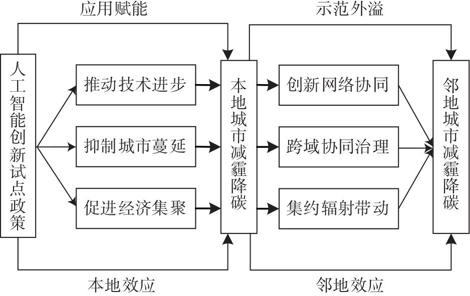 Based on the panel data from 285 prefecture-level and above cities in China from 2005 to 2023, this study employs a spatial difference-in-differences model to empirically examine the mechanisms and pathways of pilot policy of national new generation artificial intelligence innovation and development (NNGAIID) on urban haze mitigation and carbon reduction in both local and adjacent cities. It's found that: 1) Spatially, urban haze pollution and carbon emissions exhibit distinct regional heterogeneity, with a pronounced "pollution lock-in effect" evident in the "coal triangle area". Temporally, the growth rate of urban haze and carbon emissions has decelerated overall, reflecting a spatial shift toward the northwestern region. 2) The NNGAIID pilot policy significantly contributes to environmental improvement in both local and adjacent cities; this result remains robust across a comprehensive set of robustness checks. 3) Mechanism analysis confirms that promoting technological progress, inhibiting urban sprawl, and facilitating economic agglomeration serve as critical transmission channels for the NNGAIID pilot policy to empower "local-neighboring" cities in reducing haze and carbon emissions. 4) Heterogeneous effects indicate that the dual "local-adjacent" impact is more pronounced in non-resource-based cities and central cities. This paper provides theoretical foundations and empirical evidence to inform the design of targeted policies that leverage artificial intelligence innovation for integrated air quality and carbon emission management under the "Dual Carbon" strategy.