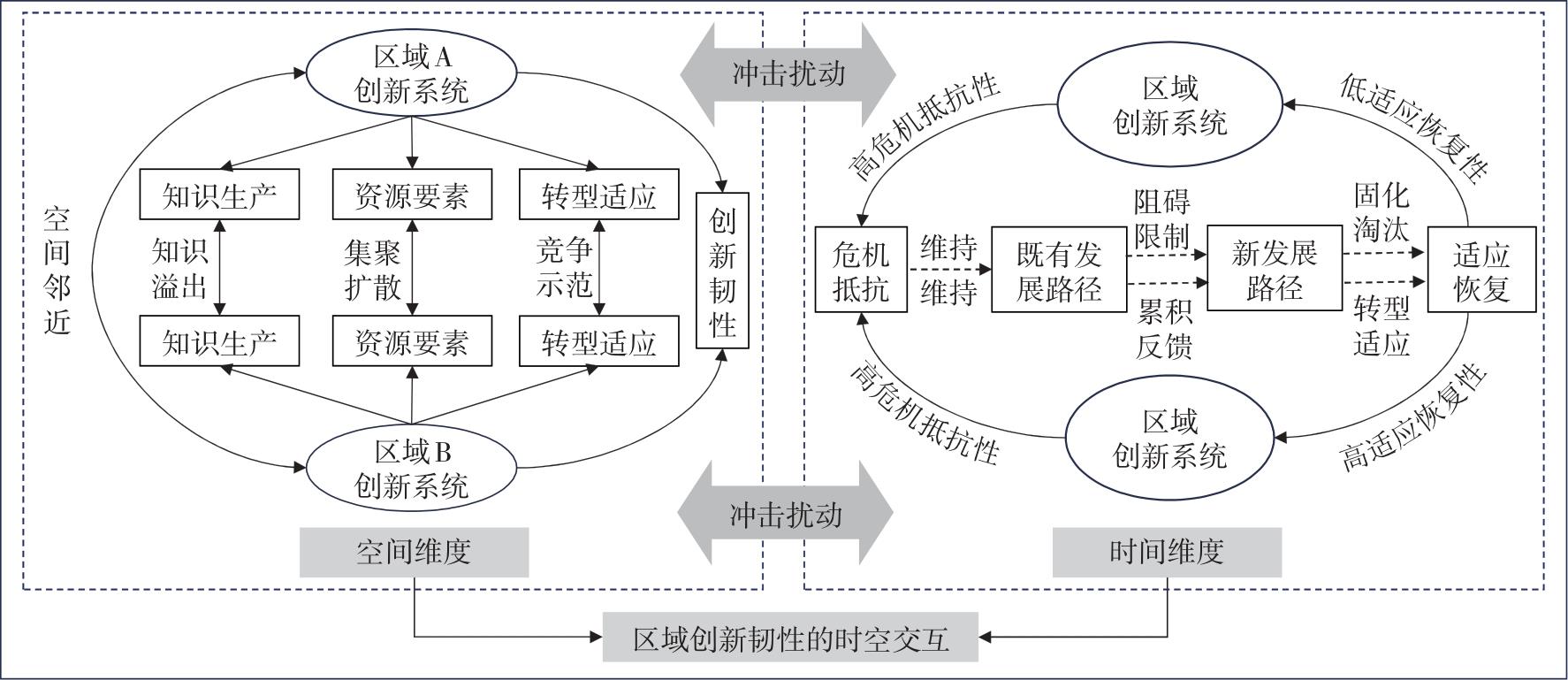 This paper identifies the concept of regional innovation resilience, employs a core variable method to measure urban innovation resilience in China from 2003 to 2019 in terms of resistance and recoverability, and uses the methods of exploratory spatial-temporal data analysis and spatial econometric model to explore the spatio-temporal interactions characteristics and influencing factors of urban innovation resilience. The results show that: 1) The overall level of urban innovation resilience in China is low with significant fluctuations. Spatially, low-resilience cities are spreading from the northwestern and southwestern regions toward the northeastern region, while medium-resilience cities are diffusing from the eastern and southern coastal areas toward the middle reaches of the Yangtze River. 2) In the process of urban innovation resilience, there is a negative correlation between resistance and recoverability. The relationship of innovation resilience between neighboring cities generally shifts from competition to collaborative development, but the spatial interactions between low resilience cities exhibit the characteristics of inertia and path dependence. 3) There are positive spatial spillover effects and negative temporal lag effects. government R&D investment and collaborative innovation exert negative and positive indirect effects on urban innovation resilience, respectively. Agglomeration effects and foreign investment have negative and positive spillover effects. The industrial structure has positive direct and spillover effects, while the level of financial development has a significant inhibitory effect on the innovation resilience of both local and neighboring cities.