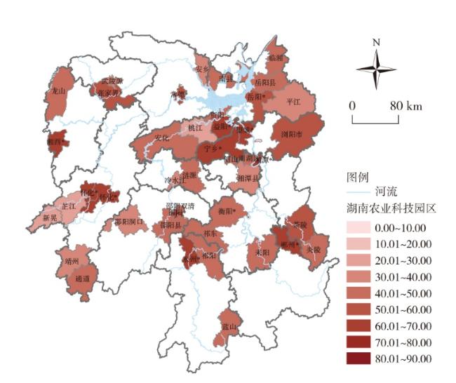 表2 湖南省农科园创新发展能力得分表Tab.2 Score table of innovation development ability of Hunan agricultural science and technology parks |