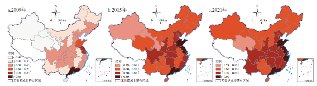 表5 全国30个省份先进制造业与信息服务业耦合协调度变化Tab.5 Coupling coordination degree of advanced manufacturing industry and information service industry in 30 provincial-level regions |