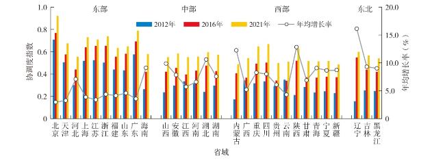 发展指数 | 协调等级 | 相对发展度 | 协调亚等级 | 省域 |