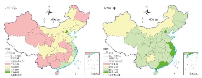 0.8<E 1.2 | 良好协调—同步发展(Ⅲ) | 上海、江苏、广东(3) | ||