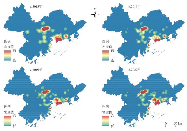 表2 企业新质生产力空间关联的网络密度、网络效率和网络关联度Tab.2 Network density,network efficiency and network association degree of the spatial association network for enterprises' new quality productive forces |