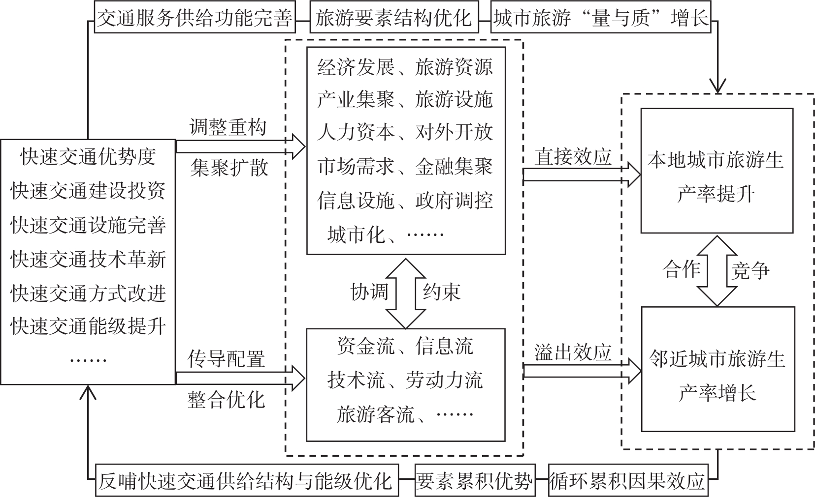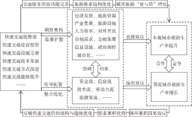 The Yangtze River Economic Belt is an important geographic unit and supporting platform for China's economic and social development,and is a gathering place for many key development factors of tourism. High-density tourism resources and tourism demand are in urgent need of efficient and rapid transportation facilities. Taking the Yangtze River Economic Belt as a research object and based on bivariate LISA model and spatial panel Tobit model,this study explores the spatial correlation characteristics of rapid transportation and tourism productivity in the Yangtze River Economic Belt from 2000 to 2017,and analyzes the spatial spillover effect of traffic superiority on tourism productivity and its mechanism. The results show that: 1) The bivariate agglomeration degree of rapid traffic superiority and tourism productivity in the Yangtze River Economic Belt(YREB) shows an overall strengthening trend,it presents the characteristic of spatially dependent. 2) The rapid transportation has significant spatial spillover effects on tourism productivity in the Yangtze River Economic Belt. The tourism productivity of city and surrounding cities' tourism productivity will increase by 0.2193% and 0.1182% respectively when the superiority degree of rapid traffic increases by 1%. The influence effect of rapid transportation shows the descending characteristics from the downstream of Yangtze River to the upstream". 3) Rapid transit system accelerates the flow and exchange of tourism elements among cities(regions) in the ways of agglomeration and diffusion,adjustment and reconstruction,conduction and configuration,integration and optimization. Urban tourism productivity promotes the structural optimization of rapid transit system and the improvement of service level through "feedback effect". This paper provides evidence on the relationship between rapid traffic and tourism productivity.