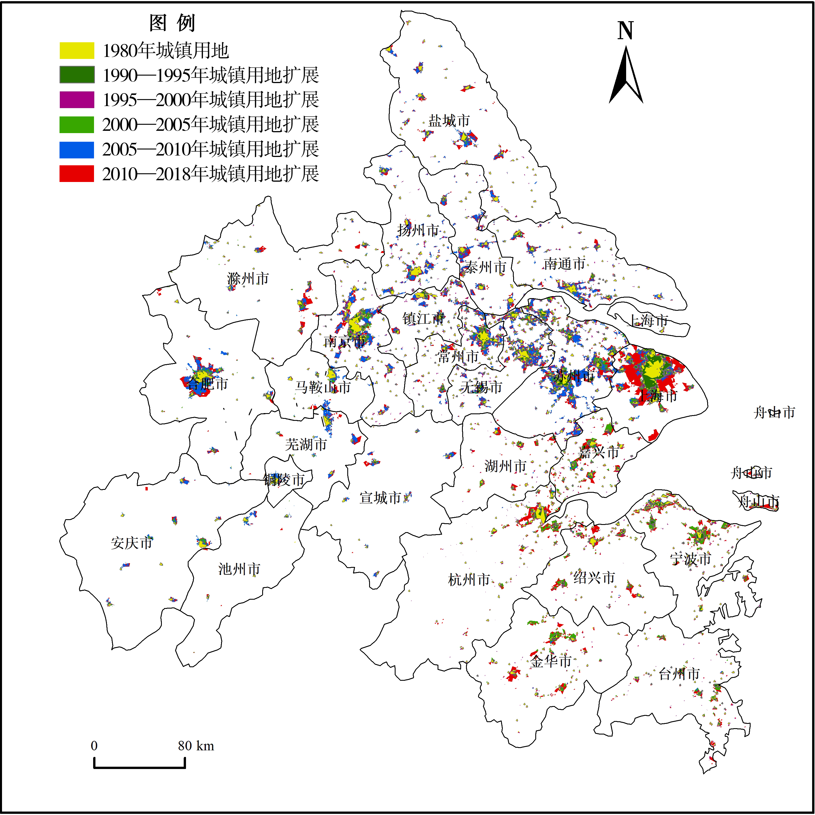 车前进, 段学军, 郭垚, 等. 长江三角洲地区城镇空间扩展特征及机制[J]. 地理学报, 2011, 66(4):446-456.