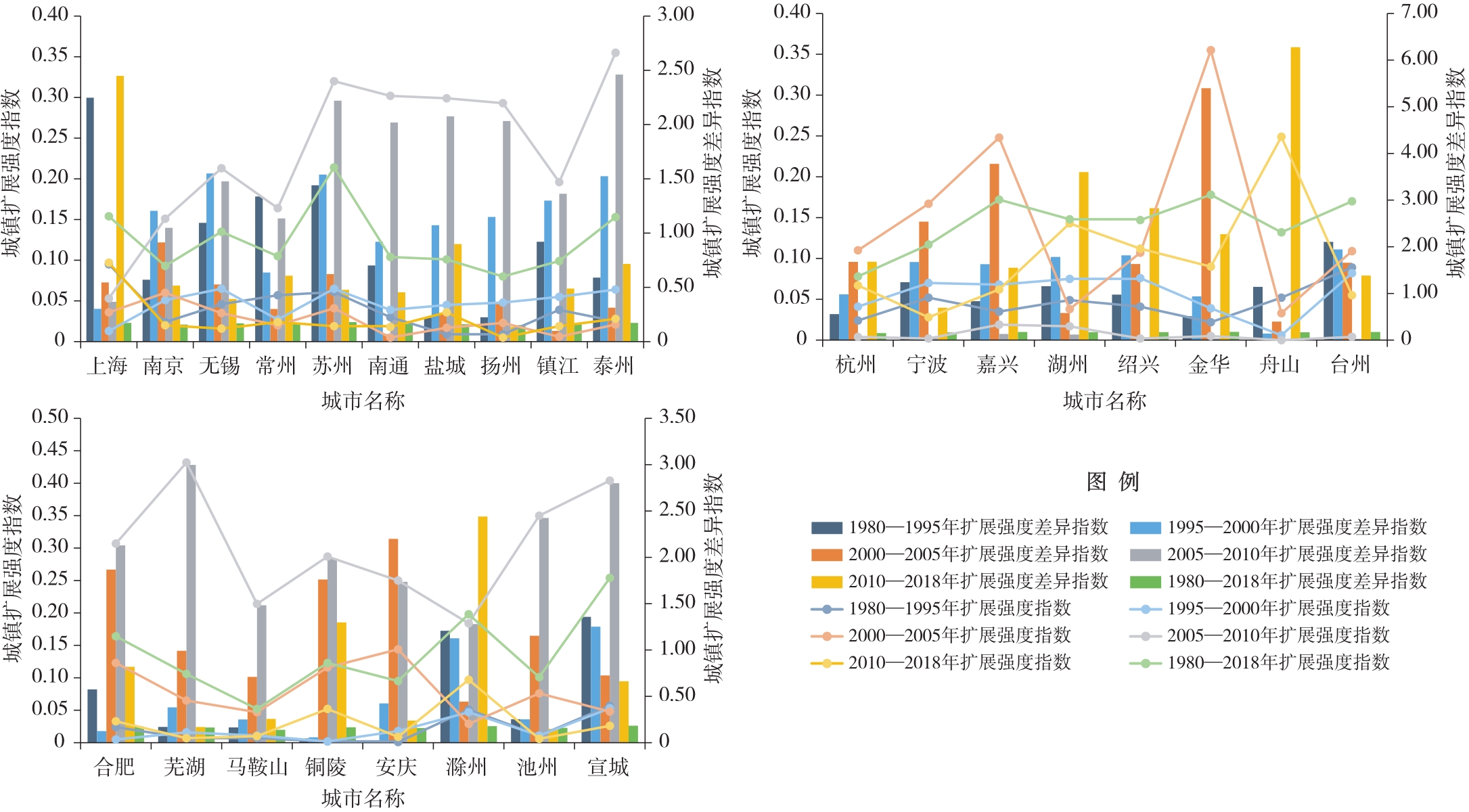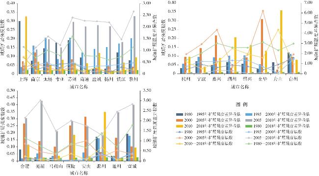 扩张强度差异 | 交通、第二、三产业 | 上海、嘉兴、杭州、金华、绍兴、宁波、舟山 |