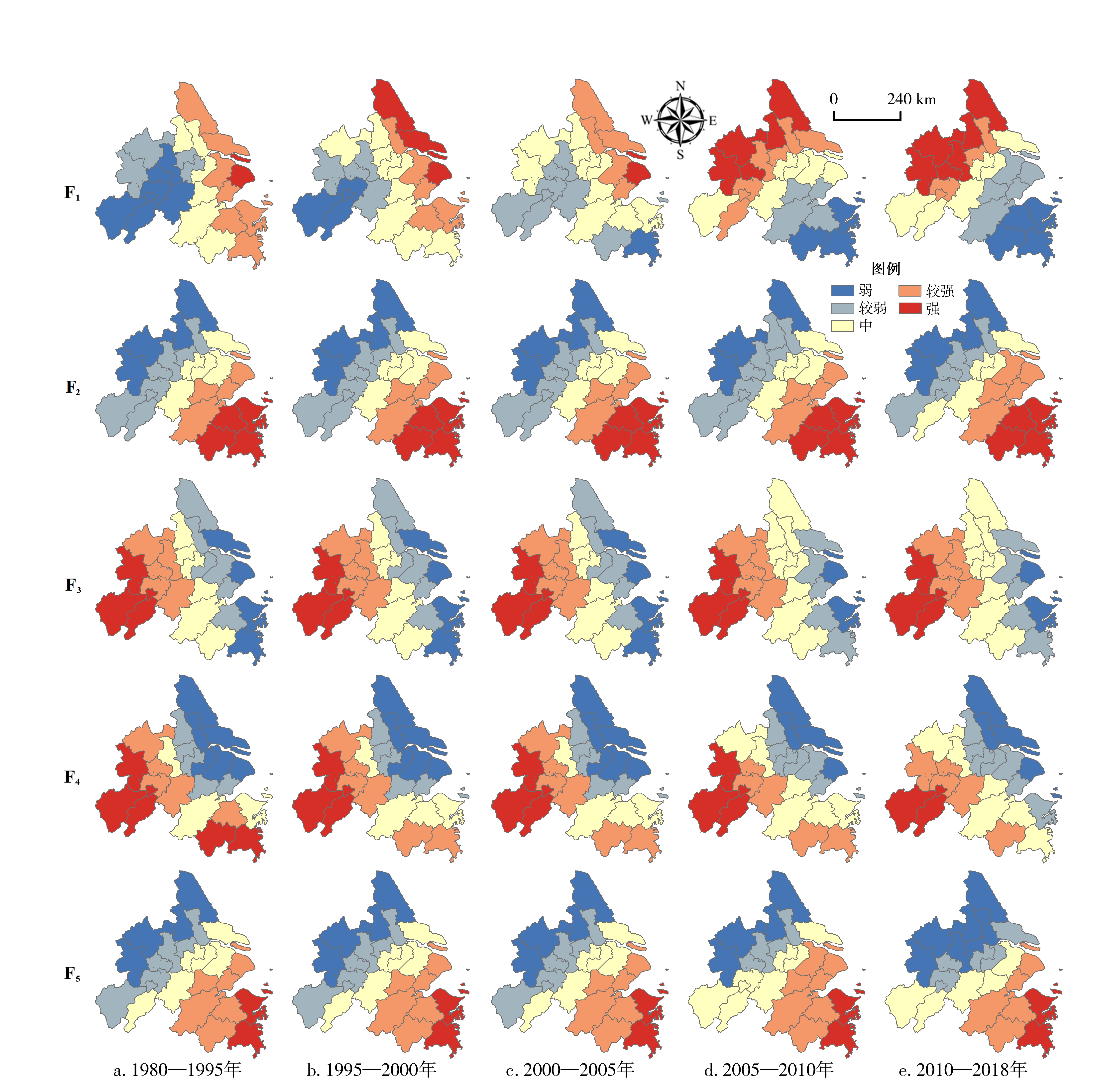 扩张强度 | 经济、交通、第二、三产业 | 宁波、台州、舟山、绍兴、金华 |