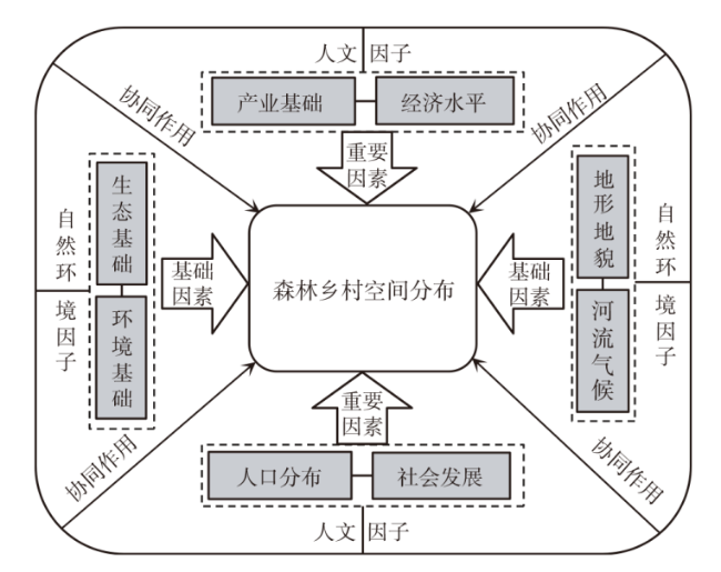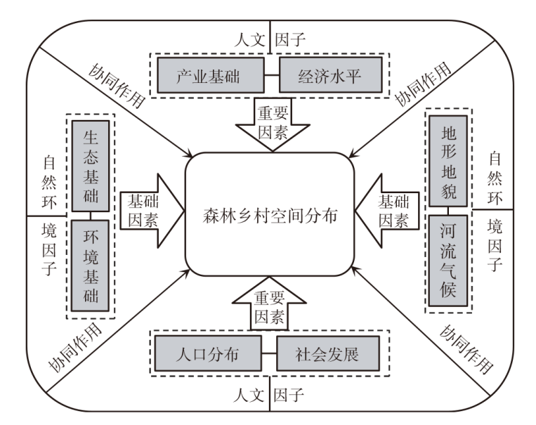 Based on the methods of imbalance index,kernel density analysis,spatial autocorrelation,this paper analyzes the spatial distribution characteristics of 7586 countries' forests and villages,and use geographic detectors and geographic overlay analysis to detect its influencing factors. The results show that: 1) In terms of overall spatial distribution,it presents a distribution pattern of "large agglomeration and small dispersion",and more significant agglomeration characteristic in the east of China than the west. 2) In terms of regional spatial distribution,it is in three major regions and eight sub-regions that it shows the characteristic of uneven distribution,and the distribution at the provincial level is extremely uneven. It accounts for 40.23% of the forest villages in the eastern region,and 79.79% in the six regions which includes the southwest and the middle reaches of the Yangtze River. 3) In terms of spatial density distribution,high-density regions distribute in the Heihe-Tengchong,the east of Beijing and the junction of Jiangsu,Zhejiang,Anhui,Jiangxi and Hunan. North China,Central China and South China are the two core continuous areas. 4) In terms of the spatial correlation,hot spot areas locate in the central and eastern regions and change from the scattered and band-shaped distribution to cluster-shaped agglomeration. Cold spot areas locate in the northwest and northeast regions and have little change. 5) In terms of influencing factors,the spatial distribution of national forest villages is affected by multiple factors which are economy,society,ecology and physical geography,among which ecological factor has greater influence than other factors. Rivers,topography,and climate also have a greater impact on the spatial distribution of national forest villages.