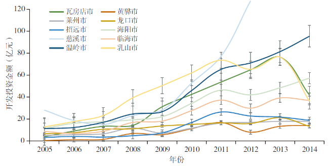 表1 沿海县级市土地效益对比(亿元/km2)Tab.1 Land benefits in coastal county-level cities (100 million yuan/km2) |