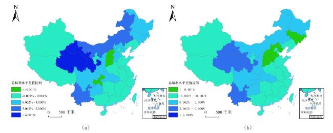| 甘肃 | -1.291 | 0.555 | 5.368*** | 0.000 | 甘肃 | -5.191 | -0.579 | -3.161*** | 0.002 | |