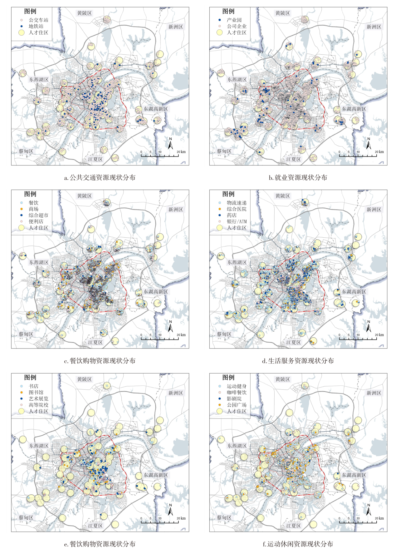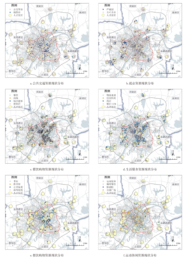 Along with the transformation and upgrading of cities in China today,talented persons play an important role in achieving a high-quality urbanization,how to attract and retain talent becomes more and more important. Now a number of large cities put efforts to attract skilled migrants to work and settle. Among them,Wuhan has successively implemented a great deal of housing projects to provide skilled migrants affordable housing. It is important to explore the methods to further evaluate the living conditions of the 'affordable housing estates of skilled migrants' (AHESK). Based on the above,this paper systematically evaluates the spatial resources of AHESK in Wuhan from the perspective of people-need. Using the database of 'big data' we collect lately,it quantitatively examines and evaluates the spatial distribution of AHESK in Wuhan at various types. Our findings are as follows: Firstly,the landscape of the spatial resources of AHESK gradually declines from the central area to the marginal area of Wuhan. Moreover,there are marked inequalities of the spatial resources of different AHESK,and different AHESK may have been equipped with unequal spatial resource. In details,the AHESK with high-score spatial resources are mainly found within the central areas,whilst that of low-score spatial resources are scattering around the peripheral areas of the city. Secondly,we identity the unequal distribution of various types of spatial resources,such as everyday life-related resources and commuting-related resources. In particular,the AHESK of Wuhan are marked by a shortage of culture and recreational resources. Thirdly,comparing to government-driven spatial resources,market-driven facilities cannot meet the needs of skilled migrants. In this vein,the local government should actively engage in the 'accurate' provision of needed faculties and spatial resources to AHESK,and the efforts of which should be built upon the empirical evaluation of their spatial resources.