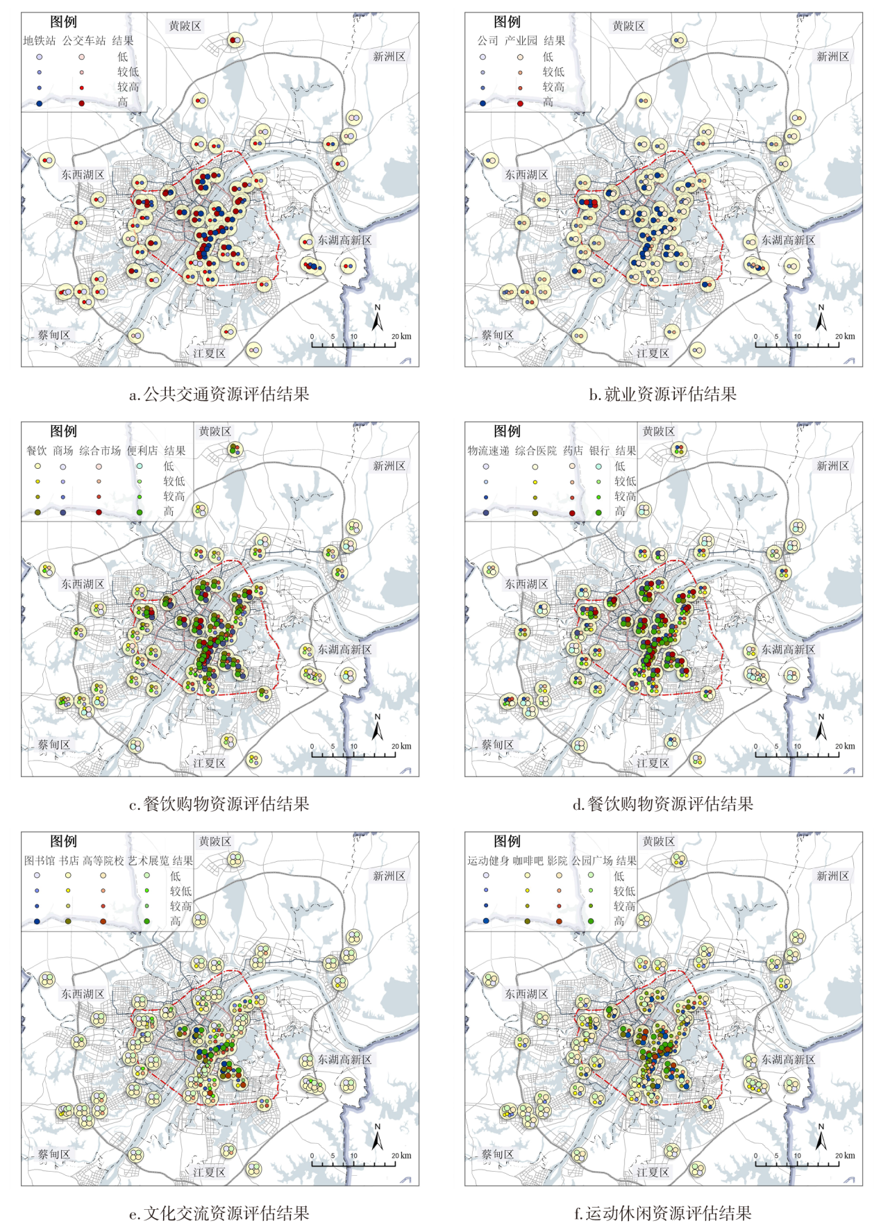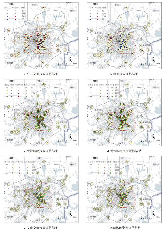 表2 武汉保障性人才住区周边资源配备度评价体系及权重Tab.2 Selected variables and weights of the spatial resources of skilled migrant neighborhoods in Wuhan |