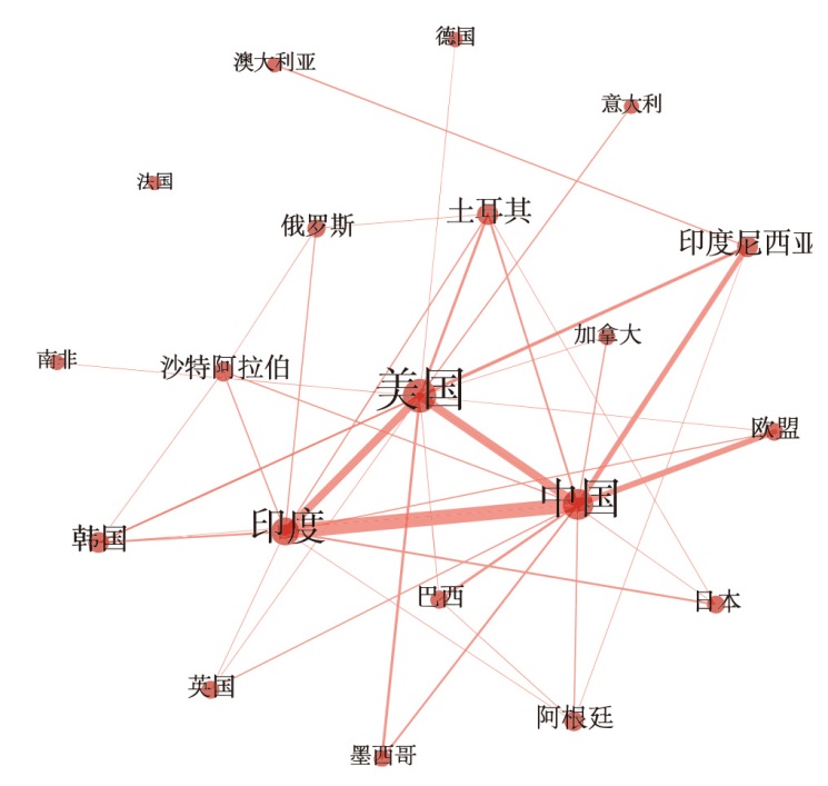 孙爱军. G20国家间贸易网络特征研究[J]. 河海大学学报(哲学社会科学版), 2019, 21(1):42-50,106.