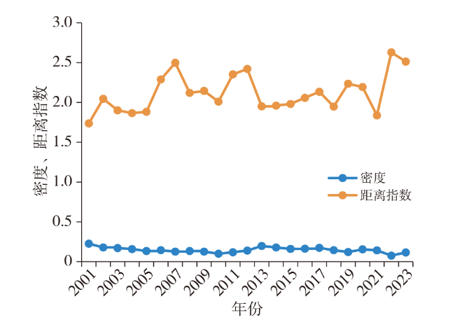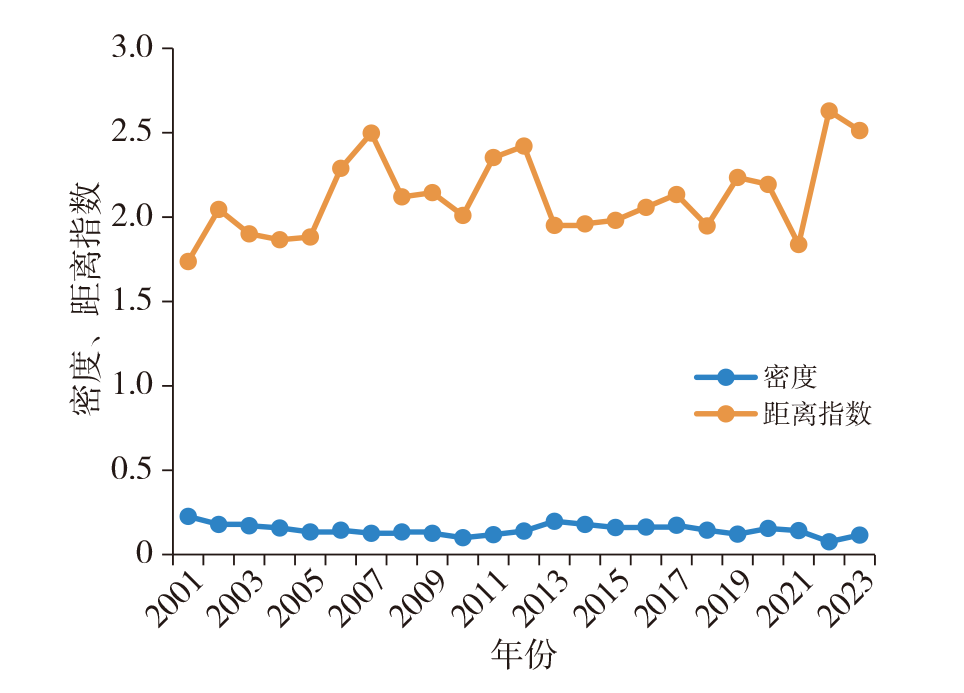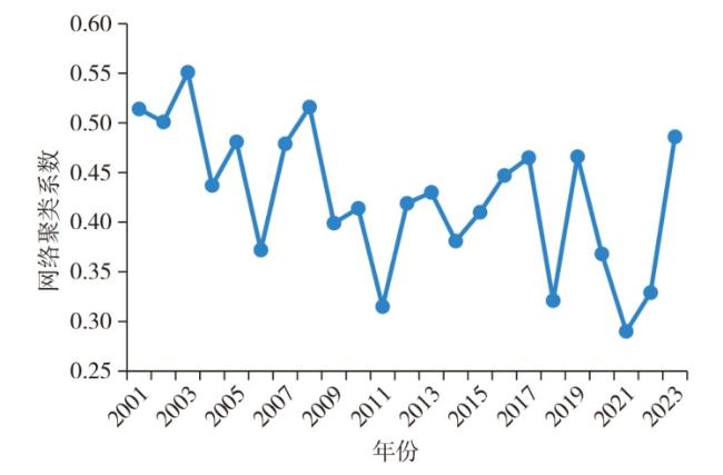 表3 G20贸易摩擦网络结构洞指数排名前十成员Tab.3 Top 10 members in the structural hole index of G20 trade friction network ranks in 2001, 2007, 2017 and 2023 |