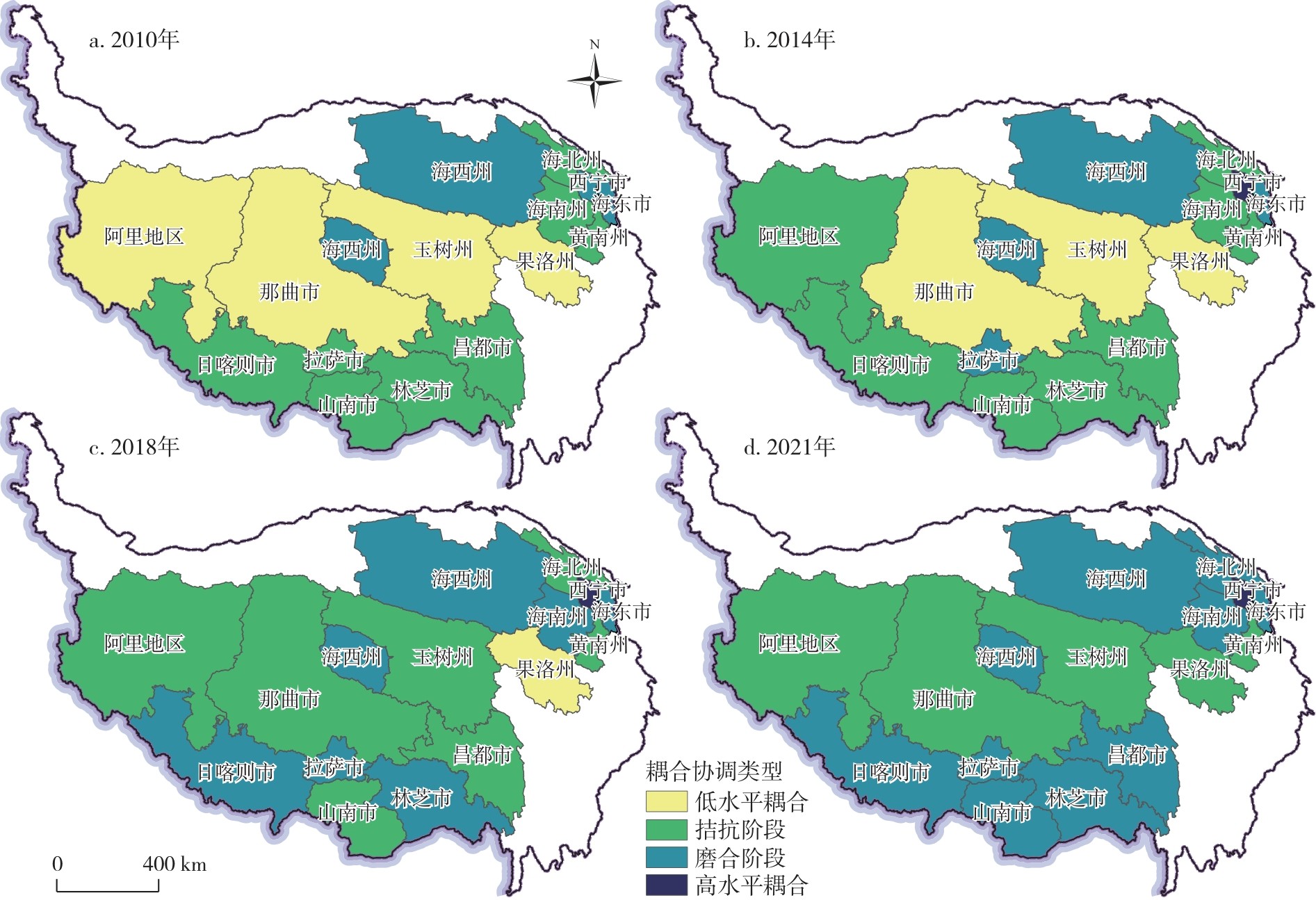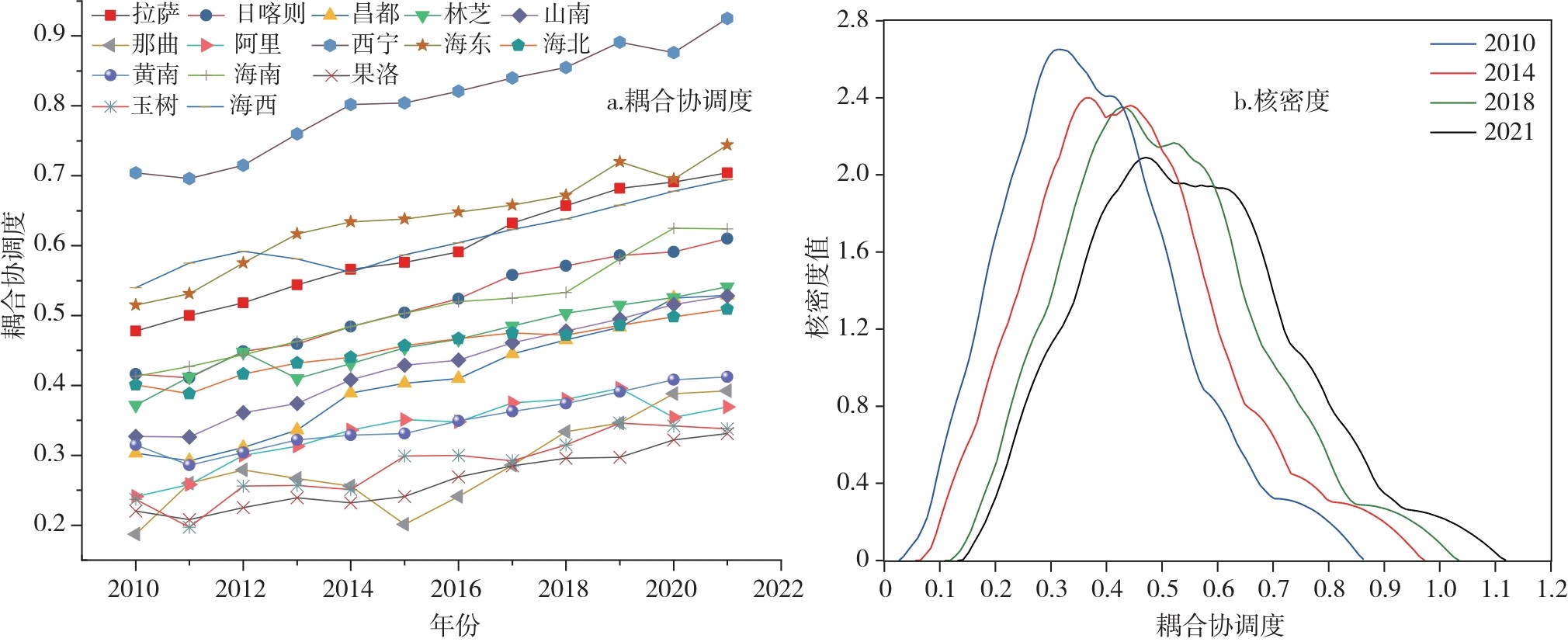 表2 2010—2021年青藏高原地区人口综合评价指数Tab.2 Comprehensive assessment index of population in the Qinghai-Tibet Plateau region from 2010 to 2021 |