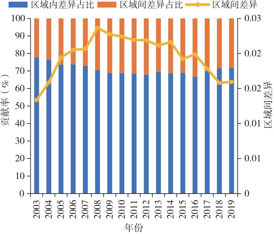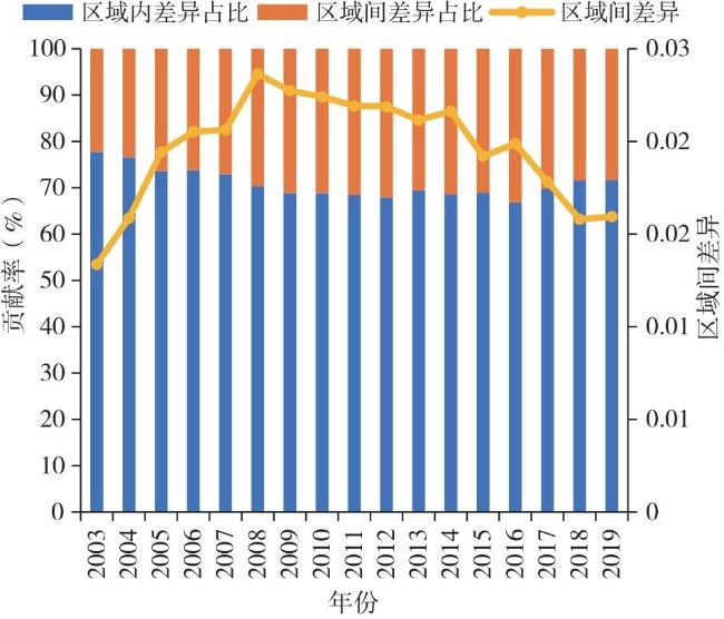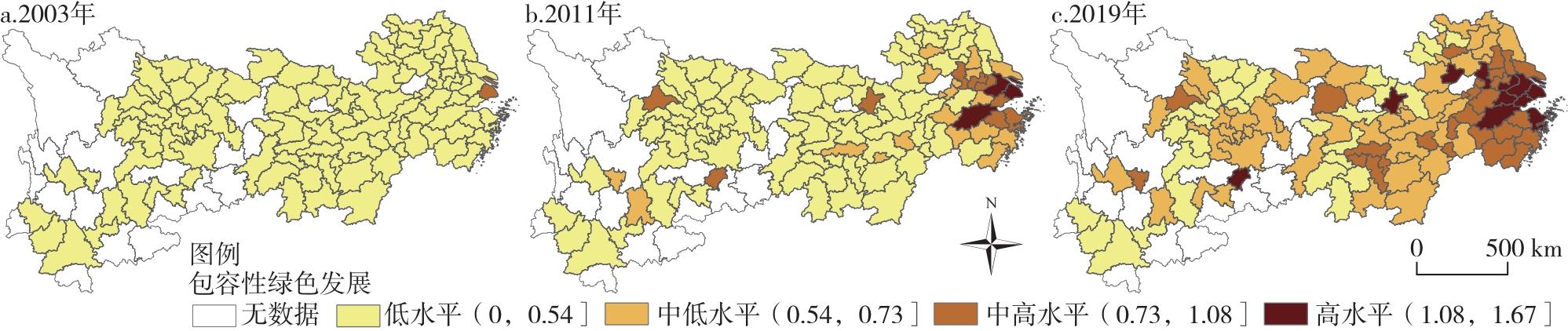 表2 2003—2019年长江经济带整体包容性绿色发展测度结果Tab.2 Measurement results of overall difference of inclusive green development in the Yangtze River Economic Belt from 2003 to 2019 |