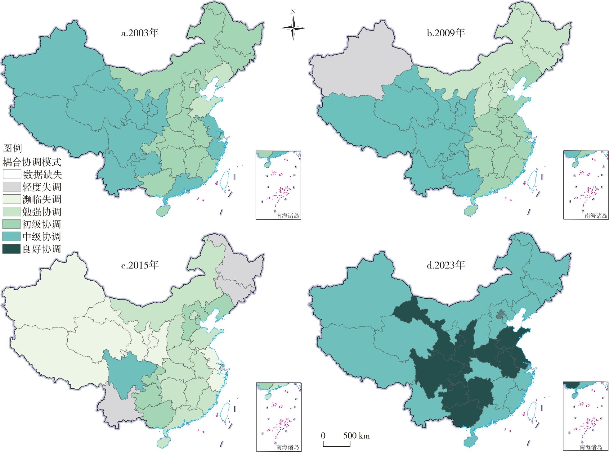 | 耦合协调度 | (0.00,0.09] | (0.09,0.19] | (0.19,0.29] | (0.29,0.39] | (0.39,0.49] | (0.49,0.59] | (0.59,0.69] | (0.69,0.79] | (0.79,0.89] | (0.89,1.00] |