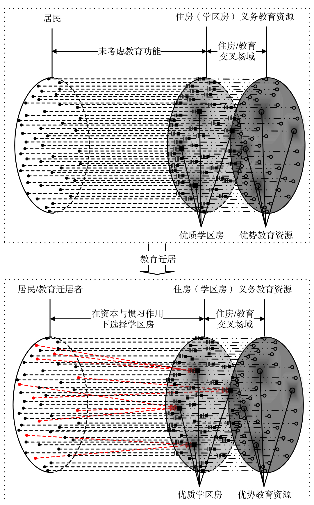 | 政府机构 | 规则制定者、市场引导和监督者。通过制定教育政策、规划教育资源配置,影响教育迁居 |