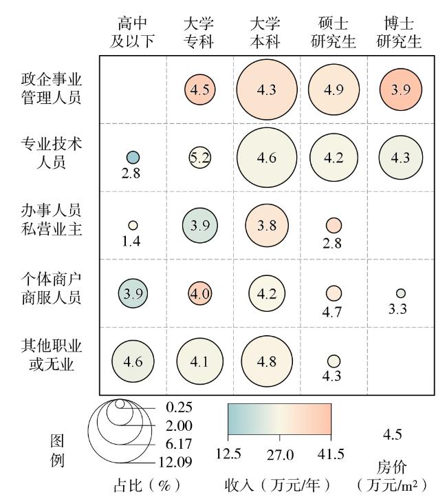 | 职业分类 | 教育迁居 | 其他样本 | 家庭收入(万元/年) | 教育迁居 | 其他样本 | |