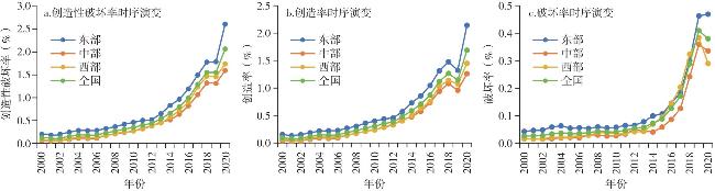 表1 创造性破坏率与关键经济变量回归结果Tab.1 Regression results of creative destruction rate and key economic variables |