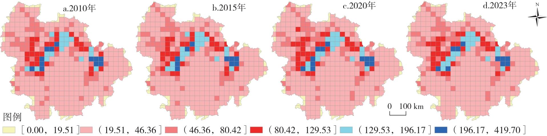 表2 2010—2023年长江中游城市群各类土地的ESV变化Tab.2 Changes in ESV of various land types in the middle reaches of the Yangtze River Urban Agglomeration (2010-2023) |