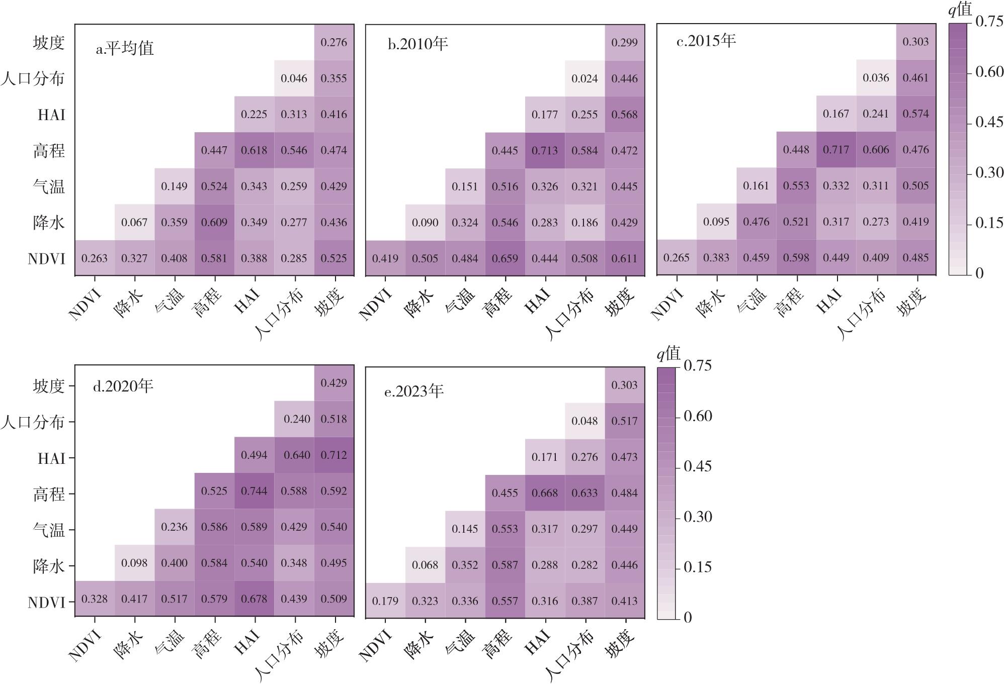 | 自然因素 | 高程 | 0.4465 | 0.000 |
