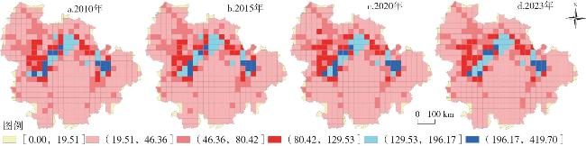 表4 2010—2023年长江中游城市群土地生态系统单项服务价值变化Tab.4 Changes in the value of individual services of the land ecosystem in the middle reaches of the Yangtze River Urban Agglomeration in 2010-2023 |