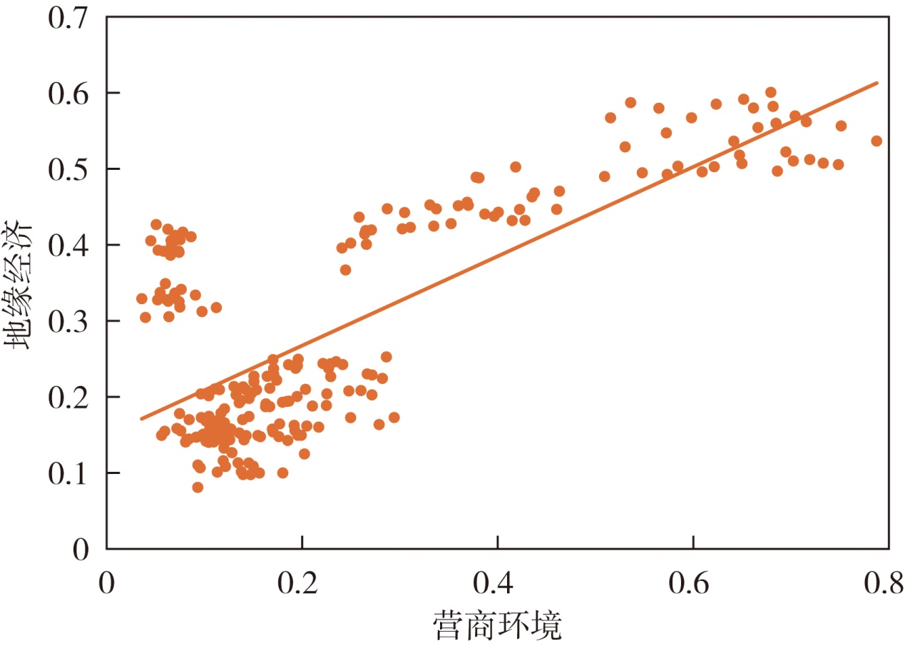 表4 营商环境与地缘经济联系子系统回归分析Tab.4 Regression analysis of business environment and geo-economic linkage subsystems |