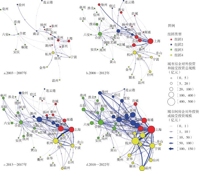 表1 2003—2022年长三角城际房地产投资网络排名前十的城市Tab.1 City rankings of intercity real estate investment networks in the Yangtze River Delta |