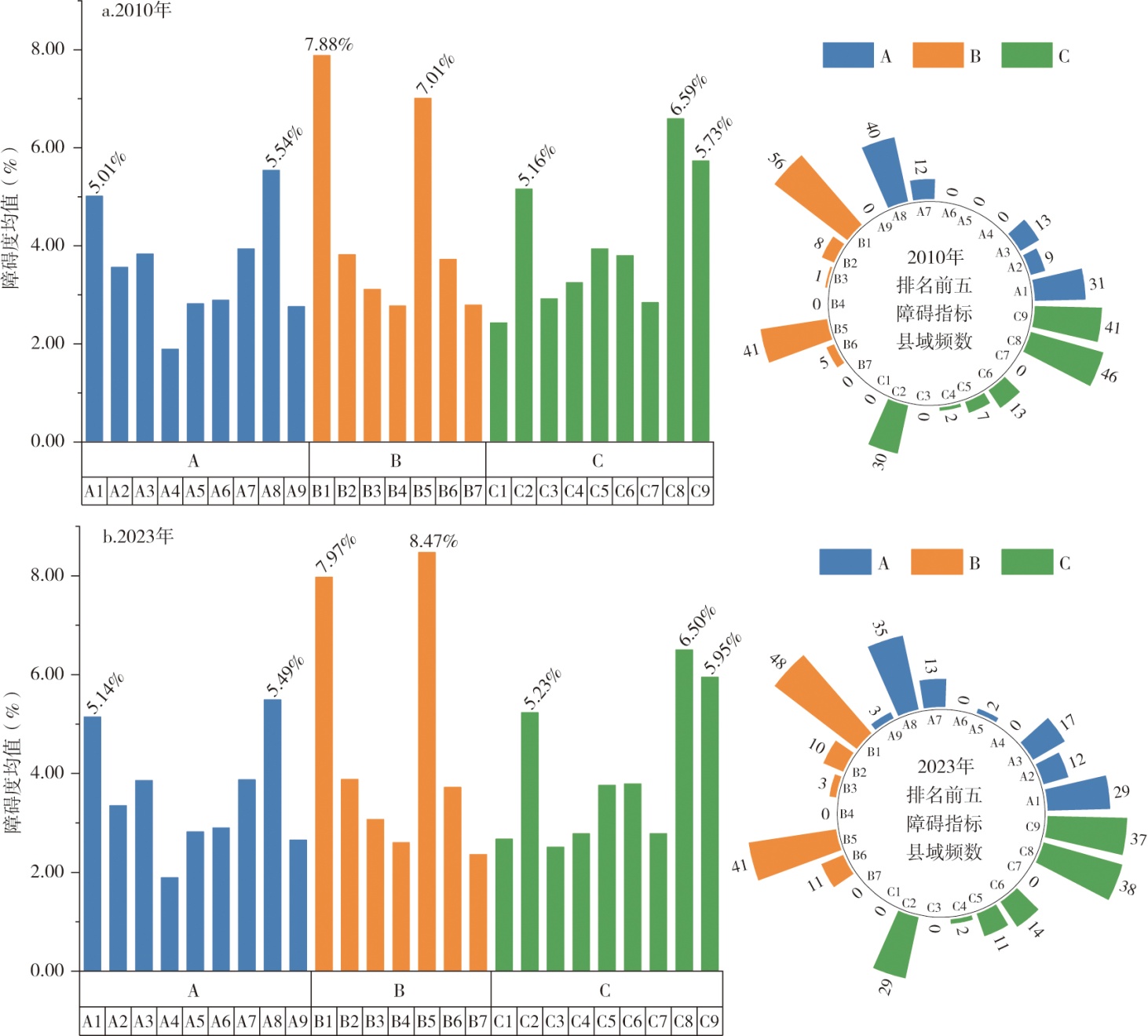 | 系统 | 障碍度均值(%) | 考察期 年均值 | |||