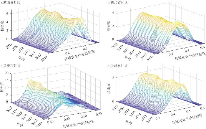 Enhancing the resilience of county-level agricultural industry chains is crucial for safeguarding the overall agricultural industry chain security. Taking 71 counties of Wuling Mountains as the research object, and employing the methods of the Dagum Gini coefficient, kernel density estimation, Markov chains, and obstacle degree model, this study assesses the resilience level of their agricultural industry chain from 2010 to 2023, and analyzes their regional disparities, evolutionary trends, and inhibiting factors. Findings indicate that: 1) The resilience of the agricultural industry chain in research area showed an overall upward trend, but there is still significant potential for improvement. The spatial pattern was characterized by gradient differentiation and polarization, with a pronounced Matthew effect of "the high-value areas getting higher and the low-value areas getting lower" and highlighting notable path dependence. 2) Over the study period, disparities between regions showed a gradual narrowing trend. The primary spatial source of differences was identified as hypervariable density, and cross-regional collaboration was still insufficient. 3) It's difficult to achieve balanced development in the short term, and there was a distinct "club convergence" feature within the fixed geographical scope. Progress in agricultural industry chain resilience tended to occur incrementally, and the risk of downward transfer needs to be prevented. 4) Enhancing the resilience, recovery ability and re-creation ability is the key breakthrough point for improving the resilience of the county-level agricultural industrial chain in Wuling Mountains. At the same time, consolidating a twofold foundation of talent development and seed industry is essential to underpin the high-quality development and sustainable development. In the future, within a multi-level framework of differentiated governance at the county level, coordinated collaboration among provinces, and alignment with national strategies, it should promote the construction of the resilience of agricultural industrial chain in county-level areas of Wuling Mountains, and thereby achieve the establishment of mechanisms and policy guarantees for the entire industrial chain and value chain of characteristic agriculture in rural areas.